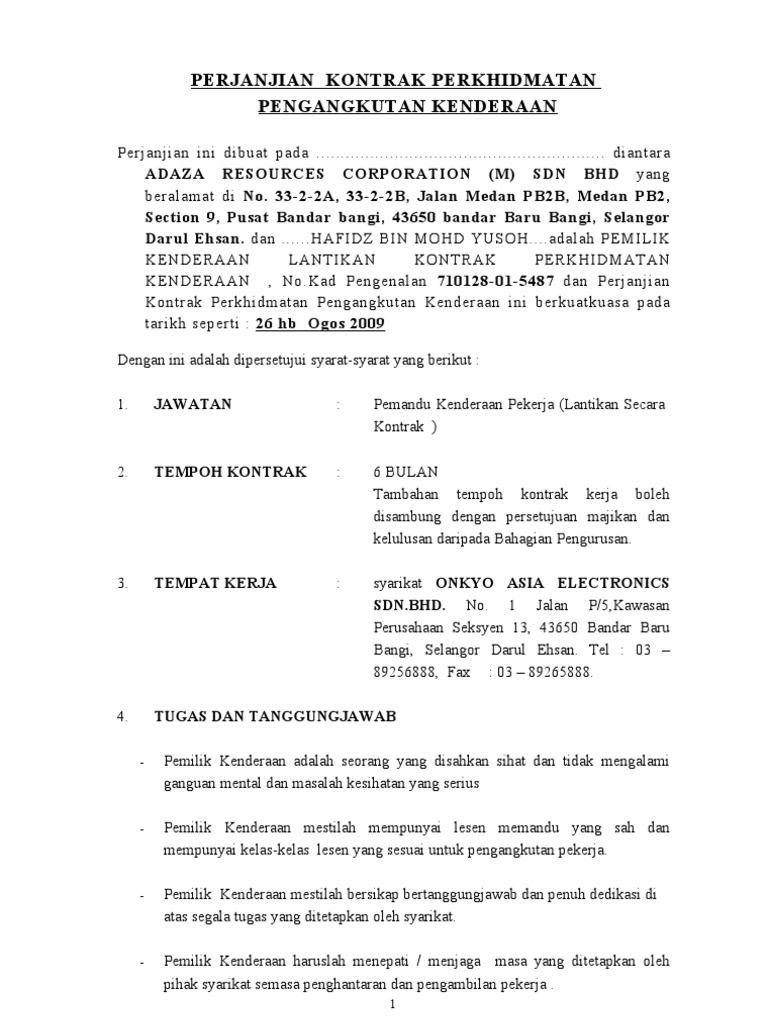 Perjanjian Kontrak An Pengangkutan Kenderaan Onkyo Adaza 15 Orang Pdf